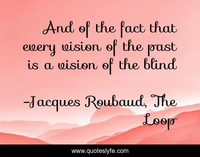 This page presents the quote "And of the fact that every vision of the past is a vision of the blind". Author of this quote is Jacques Roubaud, The Loop. This quote is about past, blindness, memory,.
