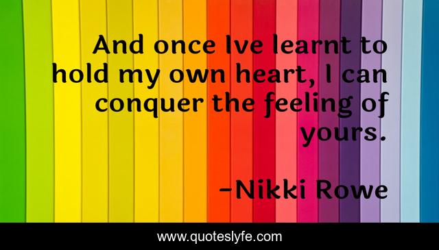 This page presents the quote "And once Ive learnt to hold my own heart, I can conquer the feeling of yours.". Author of this quote is Nikki Rowe. This quote is about true-love, love, real-love, affection,.