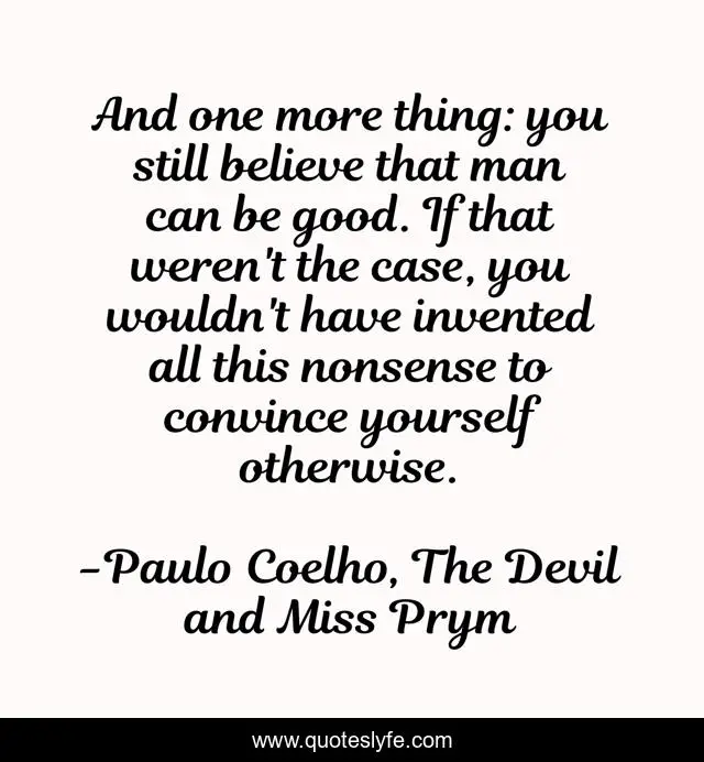 "Paulo Coelho, The Devil and Miss Prym Quotes." Quoteslyfe.com, 2025. Fri. 05 Dec. 2025. <https://www.quoteslyfe.com/quote/And-one-more-thing-you-still-believe-110940>.