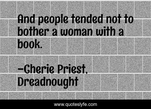 This page presents the quote "And people tended not to bother a woman with a book.". Author of this quote is Cherie Priest, Dreadnought. .