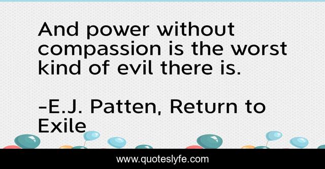This page presents the quote "And power without compassion is the worst kind of evil there is.". Author of this quote is E.J. Patten, Return to Exile. This quote is about evil, power,.