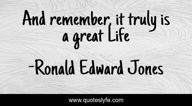 This page presents the quote "And remember, it truly is a great Life". Author of this quote is Ronald Edward Jones. .