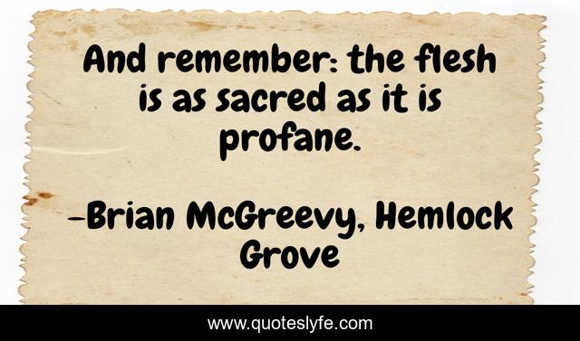 This page presents the quote "And remember: the flesh is as sacred as it is profane.". Author of this quote is Brian McGreevy, Hemlock Grove. This quote is about profane, remember, sacred, flesh,.