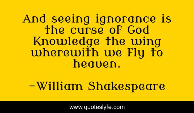 This page presents the quote "And seeing ignorance is the curse of God Knowledge the wing wherewith we fly to heaven.". Author of this quote is William Shakespeare. .
