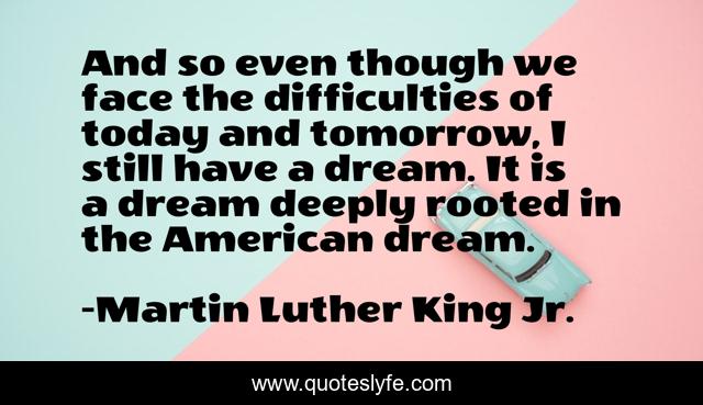This page presents the quote "And so even though we face the difficulties of today and tomorrow, I still have a dream. It is a dream deeply rooted in the American dream.". Author of this quote is Martin Luther King Jr.. This quote is about sweet, dreams, inspirational, enthusiasm,.