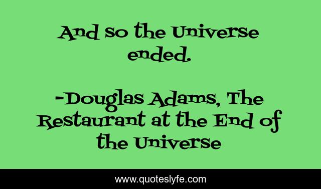 "Douglas Adams, The Restaurant at the End of the Universe Quotes." Quoteslyfe.com, 2025. Mon. 08 Dec. 2025. <https://www.quoteslyfe.com/quote/And-so-the-Universe-ended-7136>.