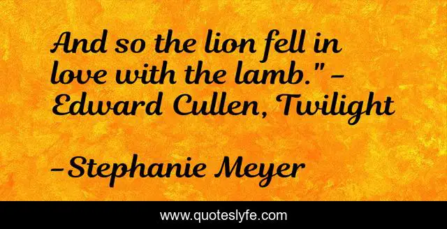 "Stephanie Meyer Quotes." Quoteslyfe.com, 2025. Sat. 06 Dec. 2025. <https://www.quoteslyfe.com/quote/And-so-the-lion-fell-in-love-82677>.