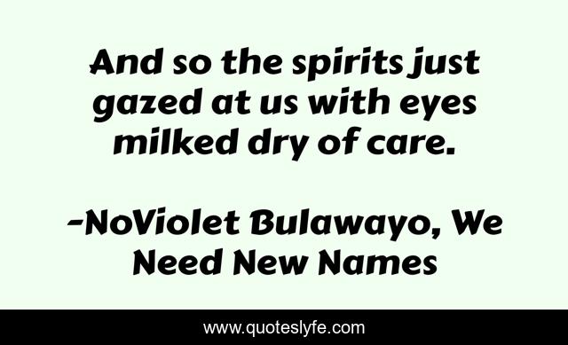 This page presents the quote "And so the spirits just gazed at us with eyes milked dry of care.". Author of this quote is NoViolet Bulawayo, We Need New Names. This quote is about caring, abandonment, spirits, african-literature,.