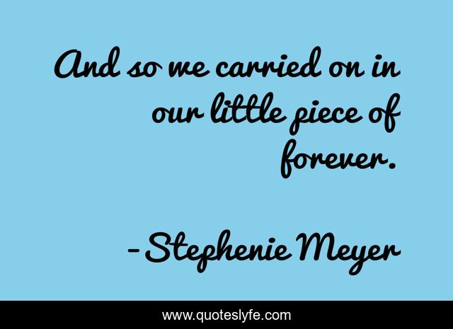 This page presents the quote "And so we carried on in our little piece of forever.". Author of this quote is Stephenie Meyer. This quote is about life, love, bella, edward, supernatural, affection,.