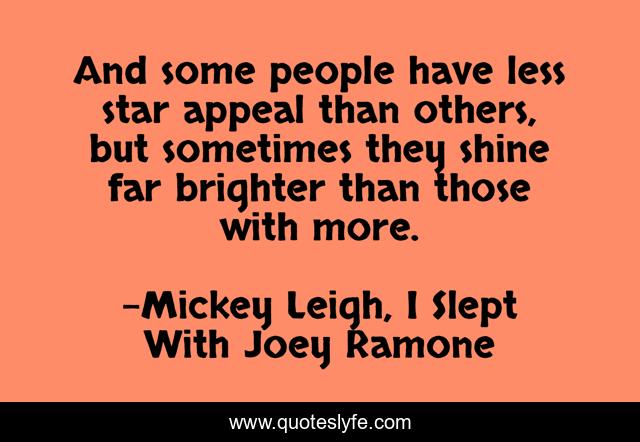 This page presents the quote "And some people have less star appeal than others, but sometimes they shine far brighter than those with more.". Author of this quote is Mickey Leigh, I Slept With Joey Ramone. This quote is about memoir, punk-rock, brothers, ramones-joey,.