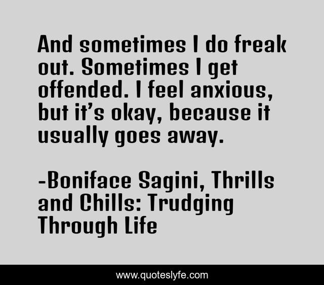 "Boniface Sagini, Thrills and Chills: Trudging Through Life Quotes." Quoteslyfe.com, 2025. Fri. 05 Dec. 2025. <https://www.quoteslyfe.com/quote/And-sometimes-I-do-freak-out-Sometimes-57691>.