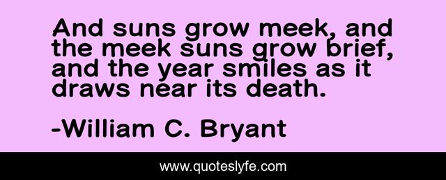 This page presents the quote "And suns grow meek, and the meek suns grow brief, and the year smiles as it draws near its death.". Author of this quote is William C. Bryant. This quote is about smiles, death, grow,.