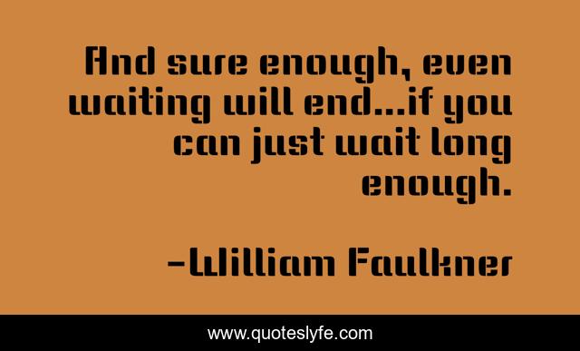 "William Faulkner Quotes." Quoteslyfe.com, 2025. Fri. 05 Dec. 2025. <https://www.quoteslyfe.com/quote/And-sure-enough-even-waiting-will-end-192927>.