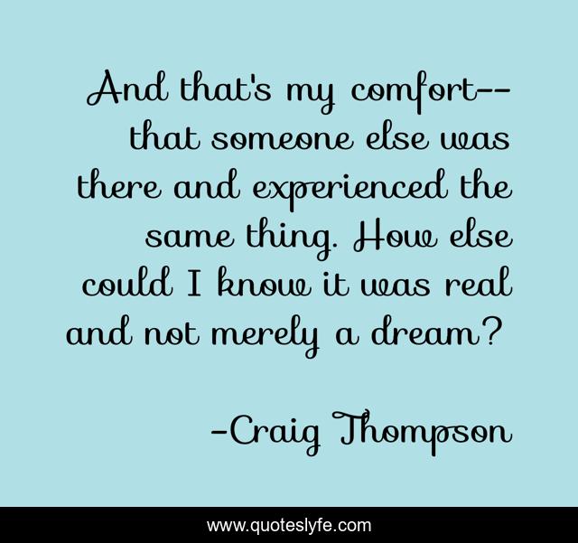 This page presents the quote "And that's my comfort--that someone else was there and experienced the same thing. How else could I know it was real and not merely a dream?". Author of this quote is Craig Thompson. This quote is about memory, companionship, reality,.