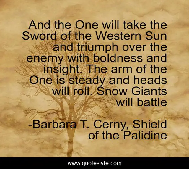 "Barbara T. Cerny, Shield of the Palidine Quotes." Quoteslyfe.com, 2025. Mon. 08 Dec. 2025. <https://www.quoteslyfe.com/quote/And-the-One-will-take-the-Sword-82818>.