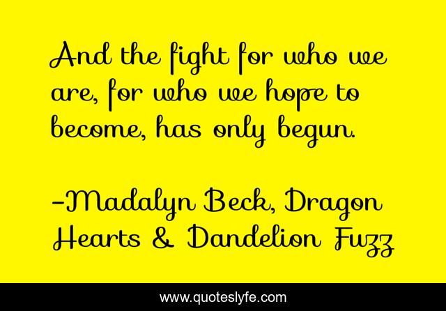 "Madalyn Beck, Dragon Hearts & Dandelion Fuzz Quotes." Quoteslyfe.com, 2025. Tue. 09 Dec. 2025. <https://www.quoteslyfe.com/quote/And-the-fight-for-who-we-are-14727>.