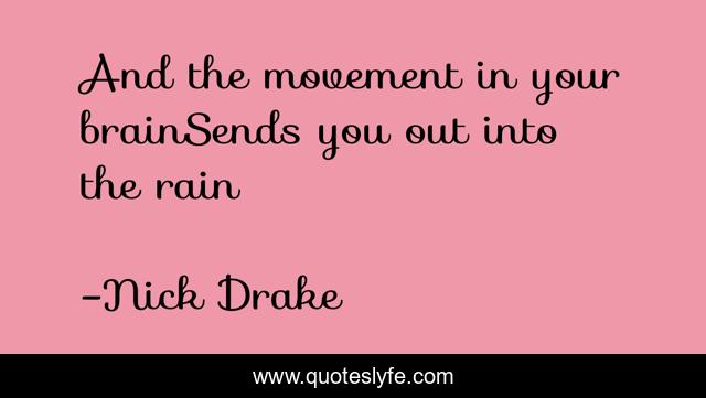 This page presents the quote "And the movement in your brainSends you out into the rain". Author of this quote is Nick Drake. .