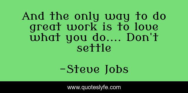 This page presents the quote "And the only way to do great work is to love what you do.... Don't settle". Author of this quote is Steve Jobs. This quote is about enthusiasm, inspirational,.