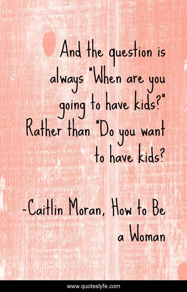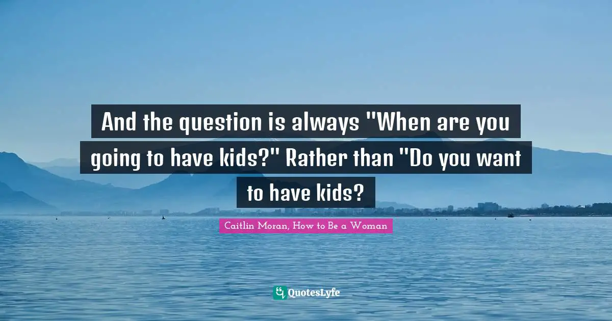 This page presents the quote "And the question is always "When are you going to have kids?" Rather than "Do you want to have kids?". Author of this quote is Caitlin Moran, How to Be a Woman. This quote is about parenthood, motherhood, children, feminism, women,.
