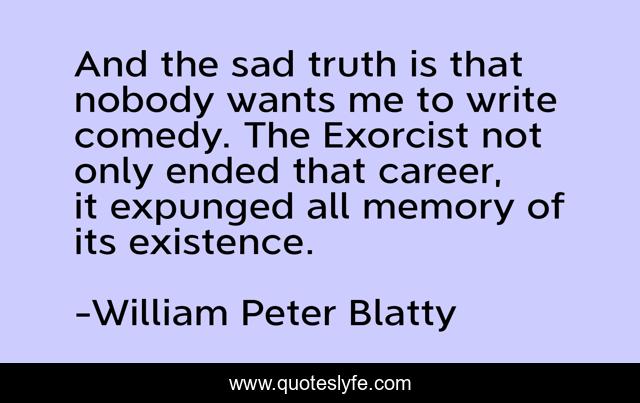 This page presents the quote "And the sad truth is that nobody wants me to write comedy. The Exorcist not only ended that career, it expunged all memory of its existence.". Author of this quote is William Peter Blatty. This quote is about me, sad, memory,.