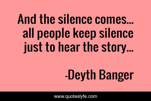 This page presents the quote "And the silence comes... all people keep silence just to hear the story...". Author of this quote is Deyth Banger. This quote is about story, comes, silence,.