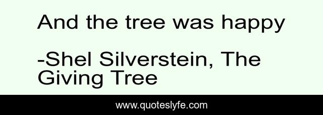 This page presents the quote "And the tree was happy". Author of this quote is Shel Silverstein, The Giving Tree. This quote is about shel, tree, silverstein, happy,.