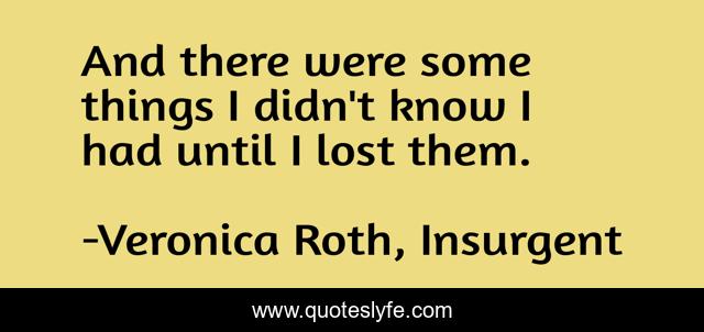 This page presents the quote "And there were some things I didn't know I had until I lost them.". Author of this quote is Veronica Roth, Insurgent. This quote is about had, lost,.