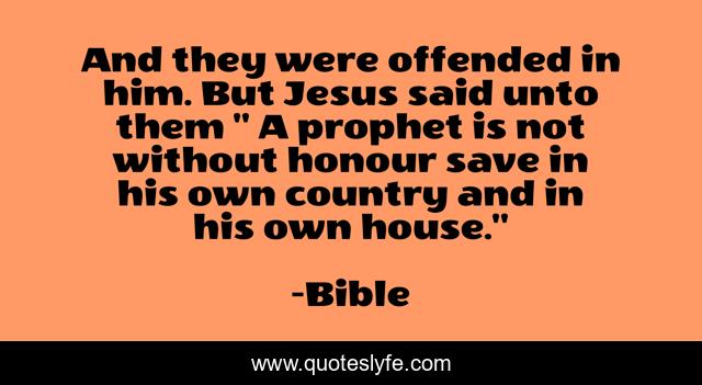 This page presents the quote "And they were offended in him. But Jesus said unto them " A prophet is not without honour save in his own country and in his own house."". Author of this quote is Bible. .
