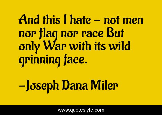 This page presents the quote "And this I hate - not men nor flag nor race But only War with its wild grinning face.". Author of this quote is Joseph Dana Miler. .