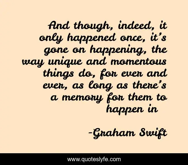 "Graham Swift Quotes." Quoteslyfe.com, 2025. Sat. 06 Dec. 2025. <https://www.quoteslyfe.com/quote/And-though-indeed-it-only-happened-once-70933>.