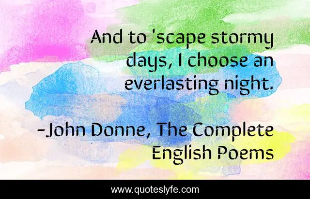 "John Donne, The Complete English Poems Quotes." Quoteslyfe.com, 2025. Sun. 07 Dec. 2025. <https://www.quoteslyfe.com/quote/And-to-scape-stormy-days-I-choose-24676>.