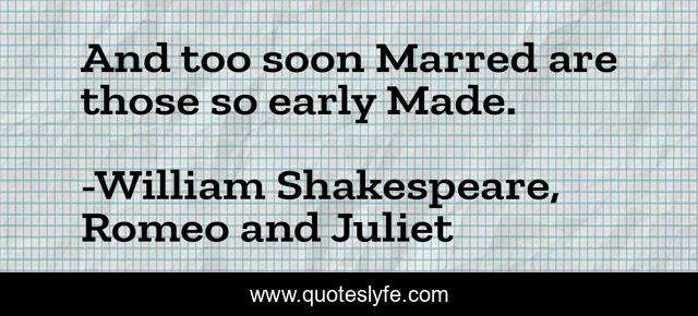"William Shakespeare, Romeo and Juliet Quotes." Quoteslyfe.com, 2025. Sun. 07 Dec. 2025. <https://www.quoteslyfe.com/quote/And-too-soon-Marred-are-those-so-76671>.