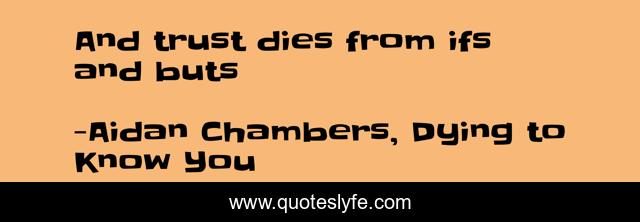 "Aidan Chambers, Dying to Know You Quotes." Quoteslyfe.com, 2025. Sun. 07 Dec. 2025. <https://www.quoteslyfe.com/quote/And-trust-dies-from-ifs-and-buts-166307>.