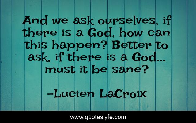 This page presents the quote "And we ask ourselves, if there is a God, how can this happen? Better to ask, if there is a God... must it be sane?". Author of this quote is Lucien LaCroix. This quote is about god, forever, knight,.