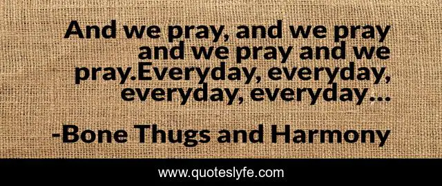 This page presents the quote "And we pray, and we pray and we pray and we pray.Everyday, everyday, everyday, everyday…". Author of this quote is Bone Thugs and Harmony. .