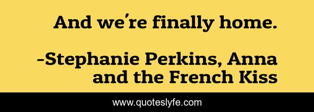 "Stephanie Perkins, Anna and the French Kiss Quotes." Quoteslyfe.com, 2025. Mon. 08 Dec. 2025. <https://www.quoteslyfe.com/quote/And-we-re-finally-home-182638>.