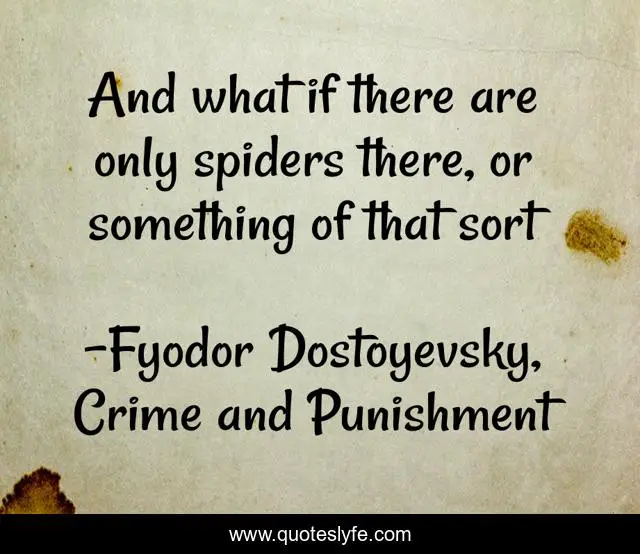 This page presents the quote "And what if there are only spiders there, or something of that sort". Author of this quote is Fyodor Dostoyevsky, Crime and Punishment. This quote is about afterlife, phylosophy,.
