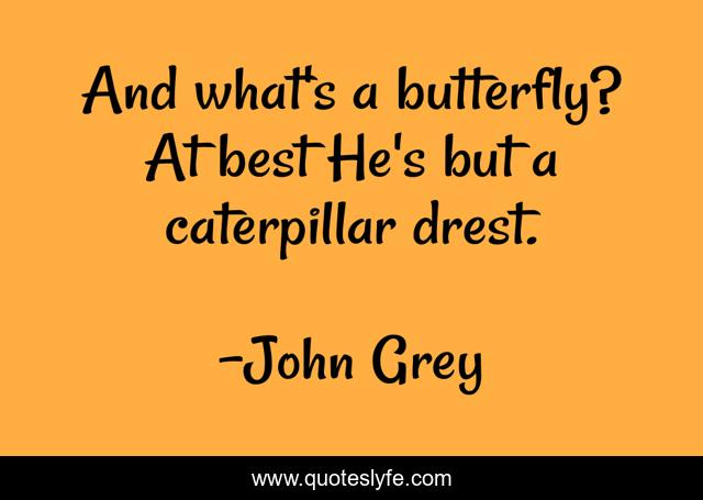 This page presents the quote "And what's a butterfly? At best He's but a caterpillar drest.". Author of this quote is John Grey. This quote is about quips, comments,.