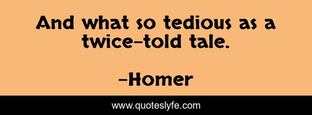 This page presents the quote "And what so tedious as a twice-told tale.". Author of this quote is Homer. This quote is about telling, story,.