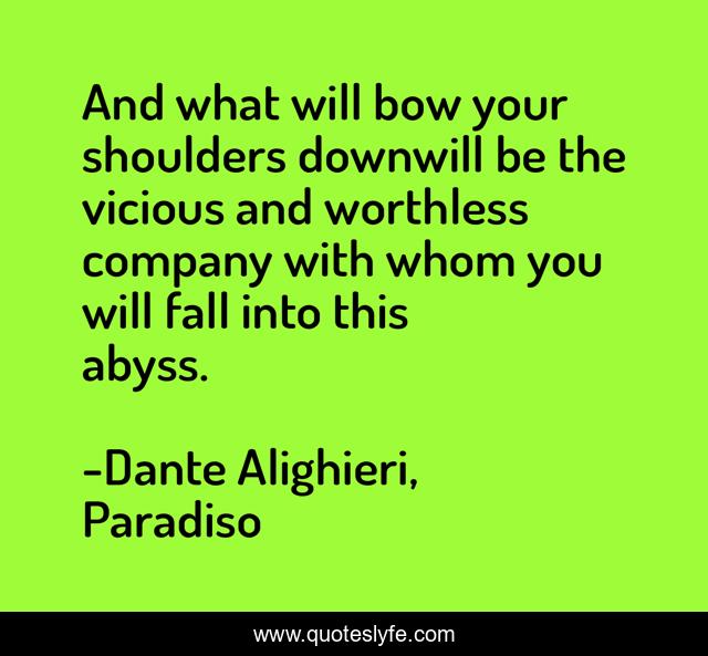 This page presents the quote "And what will bow your shoulders downwill be the vicious and worthless company with whom you will fall into this abyss.". Author of this quote is Dante Alighieri, Paradiso. This quote is about exhile, loss,.