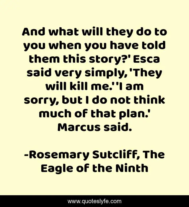 This page presents the quote "And what will they do to you when you have told them this story?' Esca said very simply, 'They will kill me.' 'I am sorry, but I do not think much of that plan.' Marcus said.". Author of this quote is Rosemary Sutcliff, The Eagle of the Ninth. This quote is about book, friendship,.
