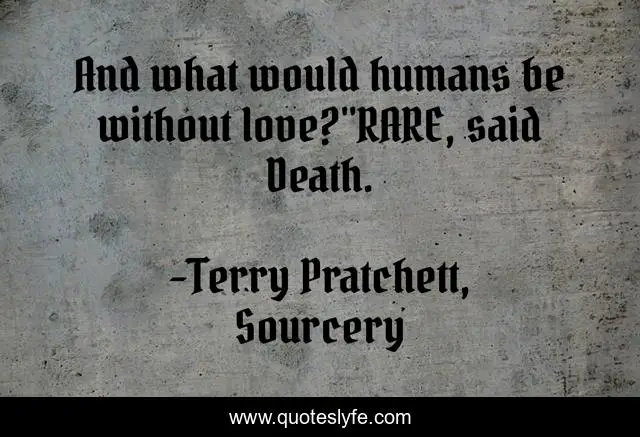 This page presents the quote "And what would humans be without love?"RARE, said Death.". Author of this quote is Terry Pratchett, Sourcery. This quote is about death, love, affection,.