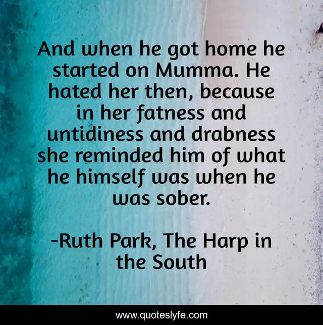 This page presents the quote "And when he got home he started on Mumma. He hated her then, because in her fatness and untidiness and drabness she reminded him of what he himself was when he was sober.". Author of this quote is Ruth Park, The Harp in the South. This quote is about relationships, alcohol, family, drunk, marriage, sober, hate,.