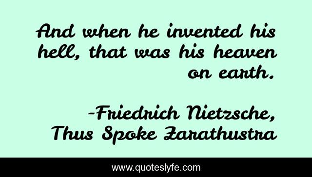 This page presents the quote "And when he invented his hell, that was his heaven on earth.". Author of this quote is Friedrich Nietzsche, Thus Spoke Zarathustra. .