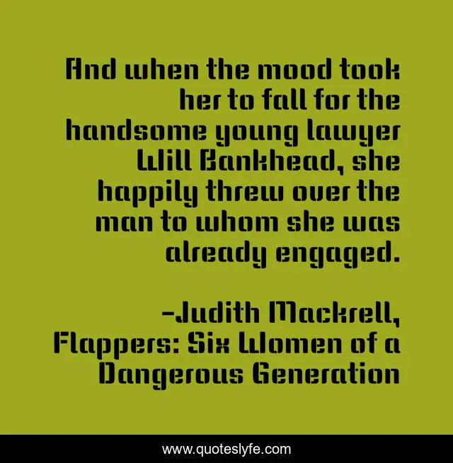 This page presents the quote "And when the mood took her to fall for the handsome young lawyer Will Bankhead, she happily threw over the man to whom she was already engaged.". Author of this quote is Judith Mackrell, Flappers: Six Women of a Dangerous Generation. This quote is about flappers, love-story,.