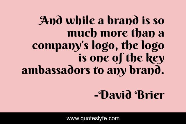 This page presents the quote "And while a brand is so much more than a company’s logo, the logo is one of the key ambassadors to any brand.". Author of this quote is David Brier. This quote is about success, business, branding, brand, strategy, david-brier, innovation, fast-company,.