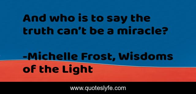 This page presents the quote "And who is to say the truth can’t be a miracle?". Author of this quote is Michelle Frost, Wisdoms of the Light. This quote is about fantasy, inspirational, adventure, science-fiction, enthusiasm,.