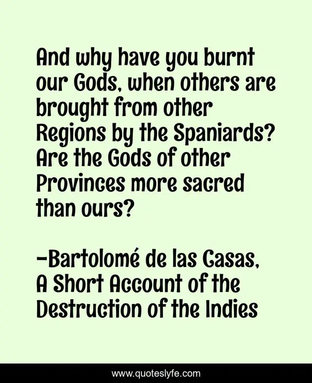 "Bartolomé de las Casas, A Short Account of the Destruction of the Indies Quotes." Quoteslyfe.com, 2025. Fri. 05 Dec. 2025. <https://www.quoteslyfe.com/quote/And-why-have-you-burnt-our-Gods-208498>.