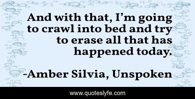 This page presents the quote "And with that, I’m going to crawl into bed and try to erase all that has happened today.". Author of this quote is Amber Silvia, Unspoken. This quote is about lighthouse, woman, hide, lost, sad, hopeless, defeat, pain, depression,.