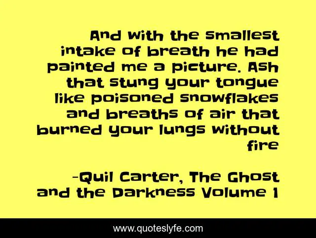 "Quil Carter, The Ghost and the Darkness Volume 1 Quotes." Quoteslyfe.com, 2025. Fri. 05 Dec. 2025. <https://www.quoteslyfe.com/quote/And-with-the-smallest-intake-of-breath-222015>.